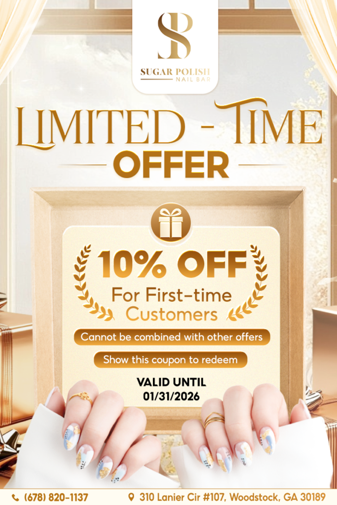 Follow Sugar Polish Nail Bar Woodstock for updates on seasonal pedicure themes, spa promotions, and self-care inspiration tailored to your lifestyle.